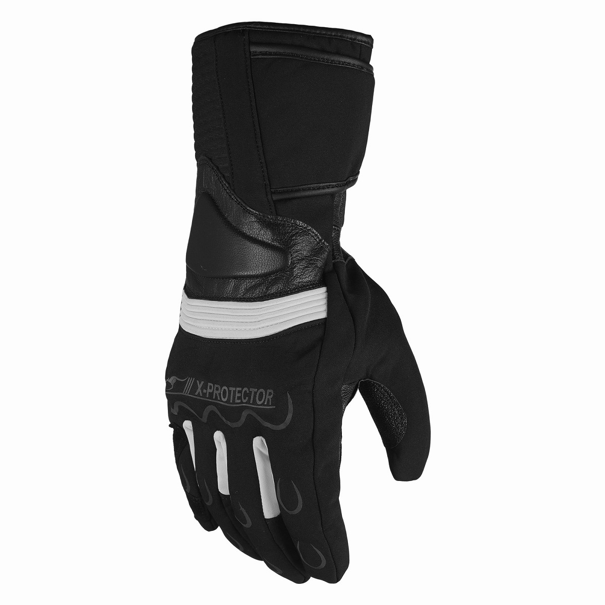 Guantes largos de moto en tela técnica y piel de vacuno con extrema protecciones, impermeables y transpirables.